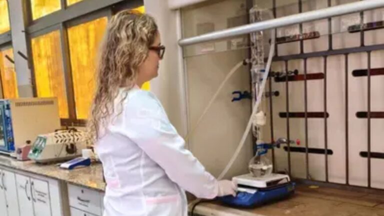 Pesquisadora Kristiane Fanti Del Pino no laboratório da FACFAN da UFMS. Foto: Arquivo pessoal